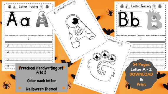 26 Abc Letter Tracing Coloring Pages Halloween Preschool Etsy